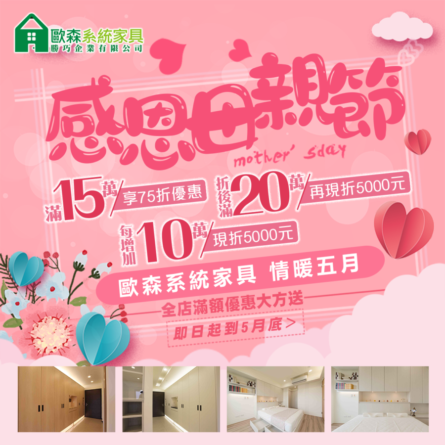 歐森系統家具為回饋消費者支持,不定期有活動,或免費3D室內設計圖優惠活動,回饋給愛護歐森系統家具的朋友!